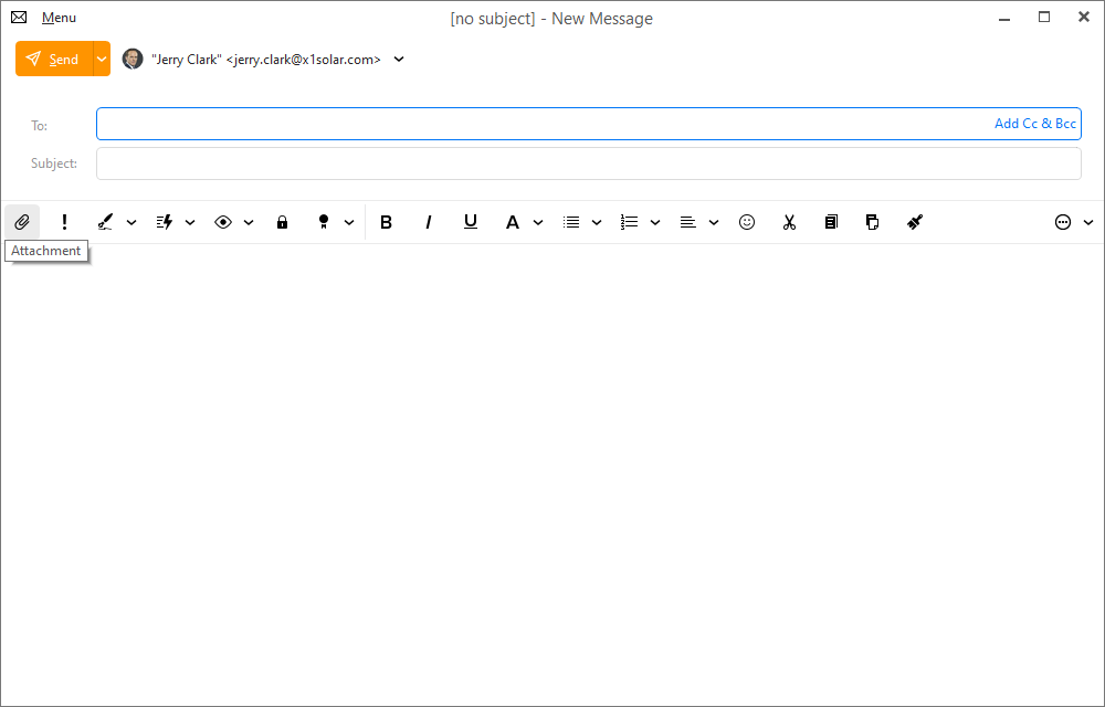 1. Dropbox のストレージにあるファイルをリンクとして添付するには、通常のファイル添付と同様に「添付ファイル」アイコンをクリックします。