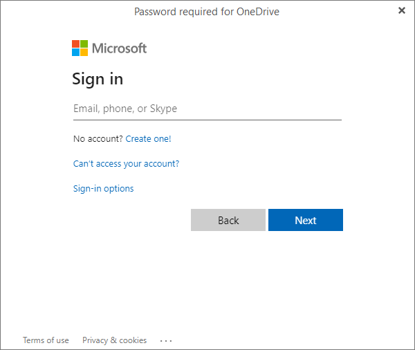 OneDrive から初めてファイルを添付する場合、OneDrive の認証情報を入力します。